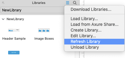 If all else fails, you could try clearing your libraries cache. This will make it so that the next time Axure RP 8 is relaunched, it reloads all of your added libraries, and it should help ensure that the most recent thumbnails for the widgets are displayed. The library cache location varies between operating systems, but you should be able to find them at one of the two following paths: