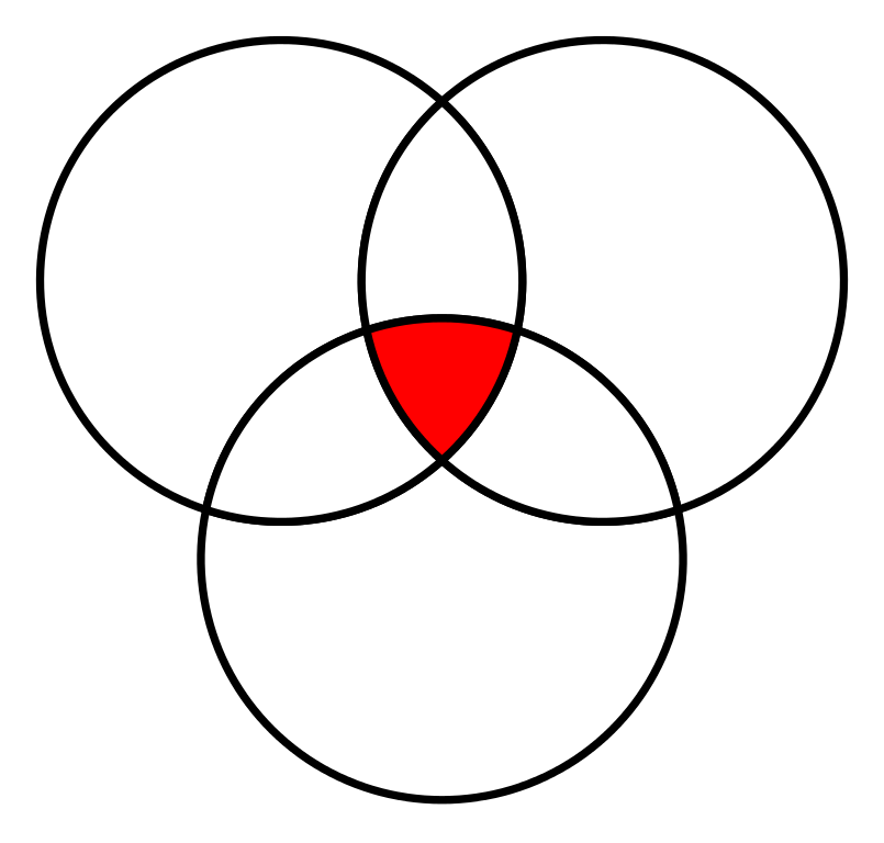 There is a requirement where I want to show three circles, which are intersecting with each other and need to show a common intersection point.