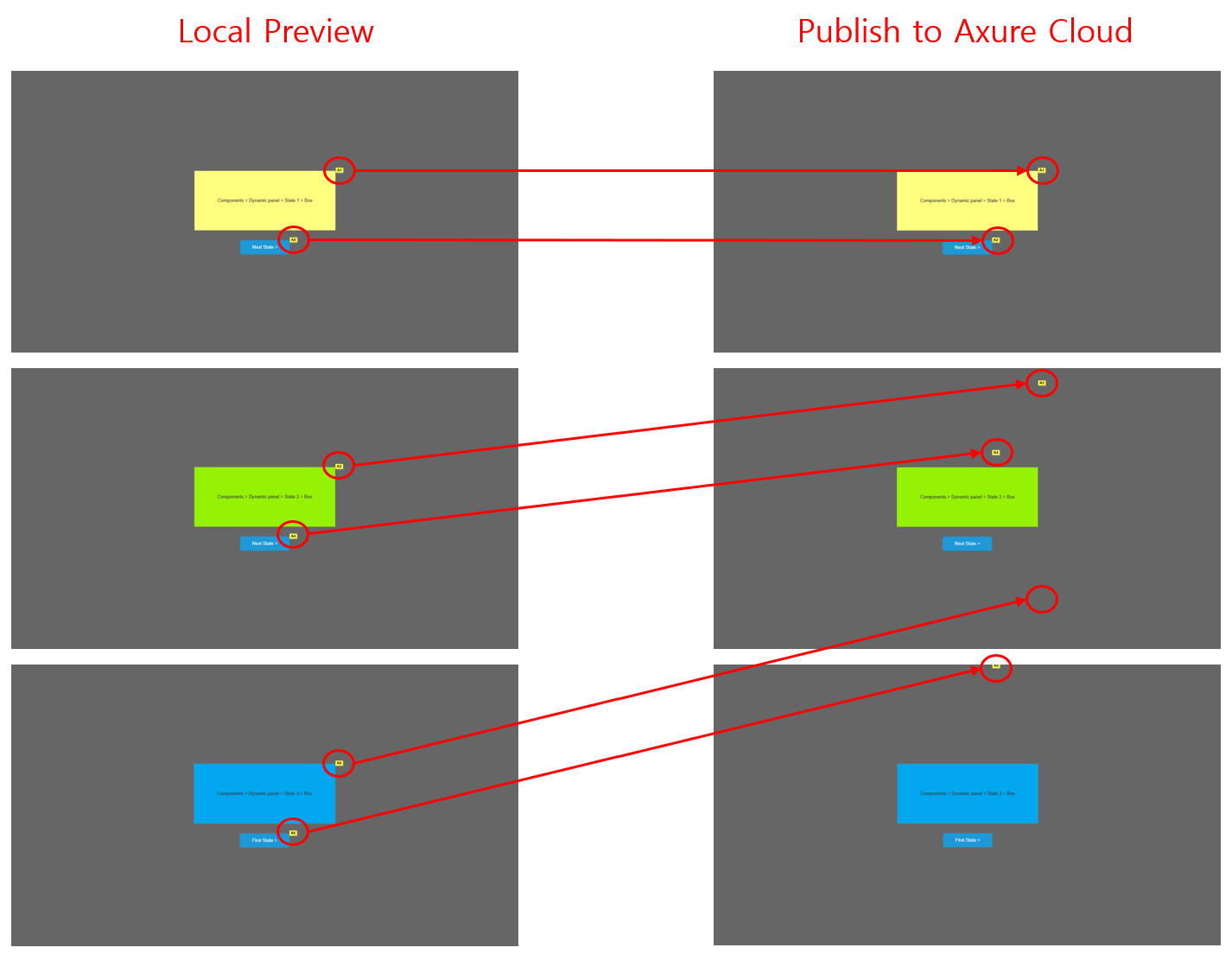 Nezmi wrote in to support about this, and this is caused by a discrepancy between Axure RP and its cloud generators. Although the latest builds of RP 11 (4135+) contains the fix with the errant note positioning after a panel state change, the generators haven’t been updated yet to reflect these changes. This will cause the local preview of the project to work correctly, but not the published version.