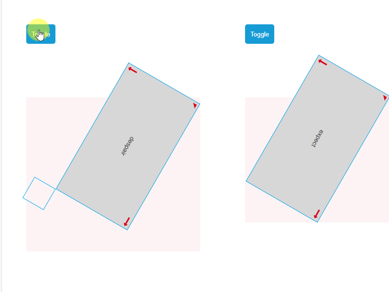 If you still need to have “Fit to Content” of the dynamic panel enabled but do not want toggling this visibility to affect the position, then you can group and rotate these widgets instead. I have made these edits to the attached file The dynamically resized panel with ‘Fit Content’ does not meet the expected expansion dimensions after rotation. - Axure Edit.rp (65.3 KB). Otherwise, you can turn off this setting when using this widget setup.
