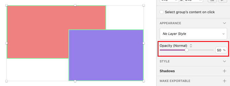 Setting the opacity of a group or DP using the style panel sets the opacity of the group’s/DP’s children instead of the group itself
