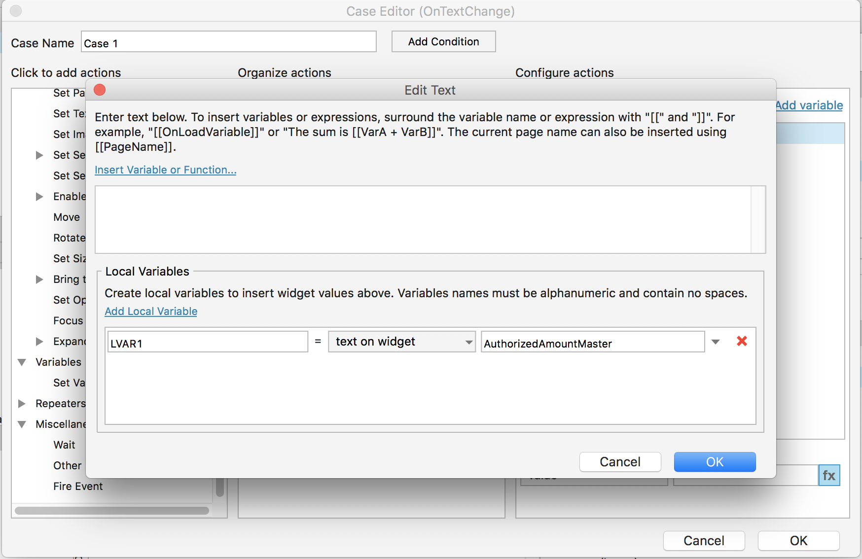 Close, but you’re setting the local variables on an empty Set Variable action and then doing nothing instead of on the Set Text action where you want to use them.