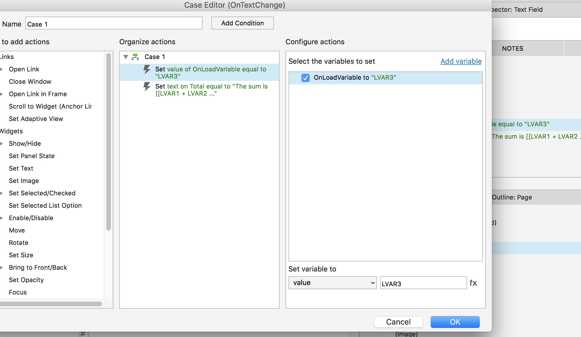 You had a Set Text action that looked like: [[Input1 + Input2 + Inpput3]]. You need to define those variables for the Set Text action to work.