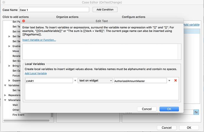 It looks like you have three variables that are undefined. And that’s why it’s failing. You’re using variables AuthorizedAmountMaster, OutstandingBalance, and NewFunds but those are not defined as local variables or global variables so the expression fails.