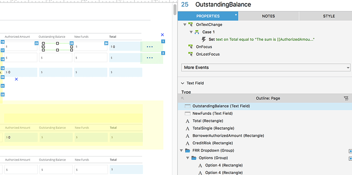 It looks like you were trying to use the widget names of the other text fields. You can’t do that. Widget names are not unique so even if you could, it wouldn’t simply work that way. What if you have 20 widgets named OutstandingBalance?