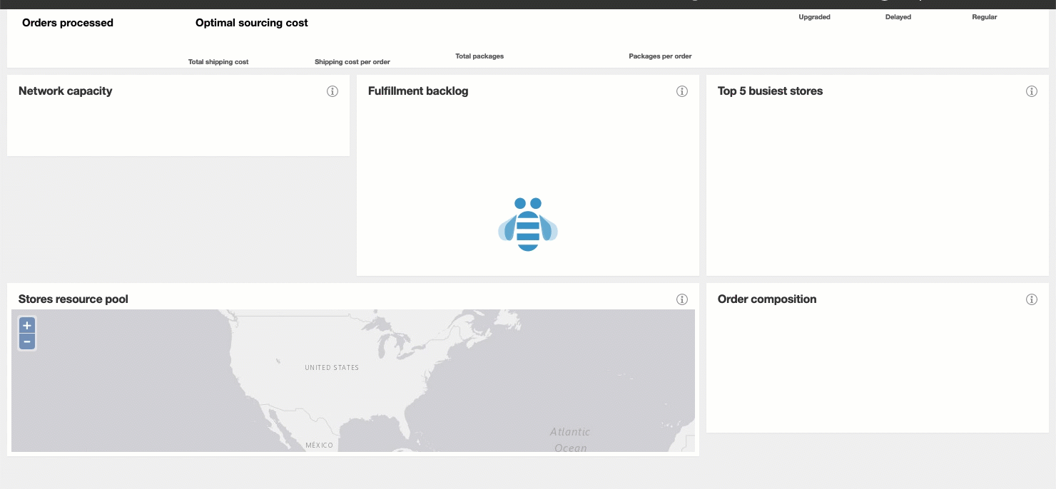 You should be able to use the internal variable, [[Window.width]] to calculate the widths of your panels in the OnPageResize event. For instance, the three panels in the middle row could be set to [[(Window.width/3) - Margin]] (where “Margin” is a text value or global variable for the padding space between column elements). You’d probably want to resize a rectangle widget (such as your white background) and then in that widget’s OnResize event, calculate the needed widths and .x location values for the widgets that belong to it. Panel A (Network capacity) would move Panel B (Fulfillment backlog) to [[This.right + Margin]] and Panel B would move Panel C to [[This.right + Margin]] in a chain effect.