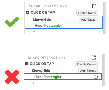 What you may have noticed is that copying and pasting only a target is not supported. In the example below, the target “Hide (Rectangle)” cannot be copied and pasted by itself. I can see how this can be frustrating so I’ve logged a feature request to have the team take a look at enabling copying and pasting targets.