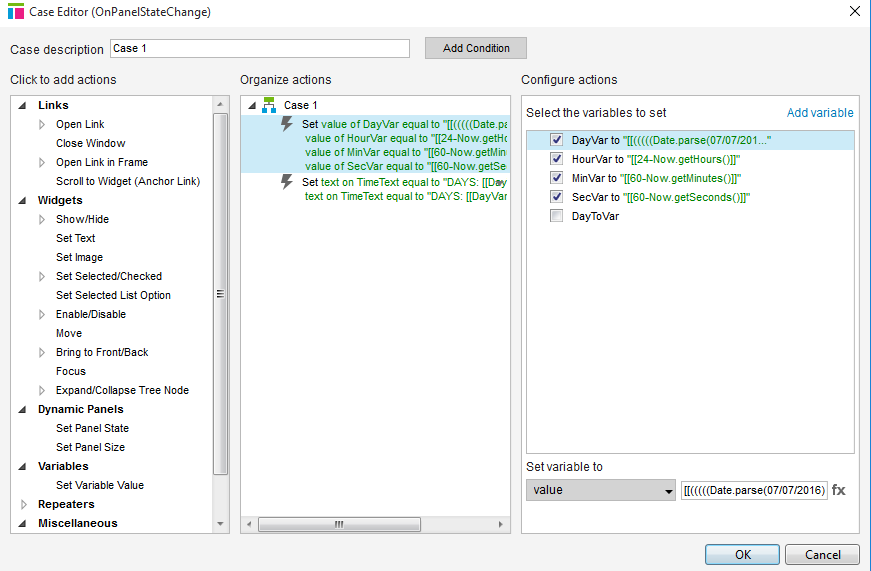 Then, change the OnPageLoad to set the value of DayToVar. So, for example, if you wanted to count down to Christmas, you would set that variable to be ‘SUN DEC 25 2016’.
