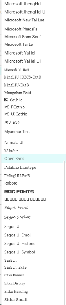 The font selection menu seems to be too tall to show my list. Fortunately I can still enter by typing the name of the font.