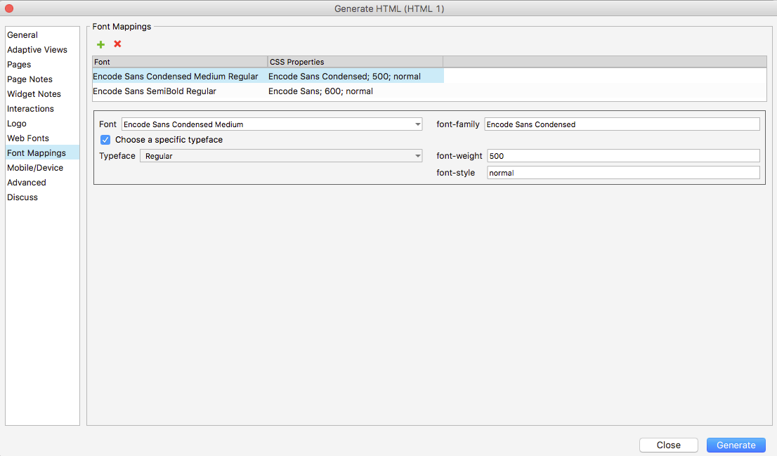 Generally if you include all needed font weights in the web fonts tab then it is not necessary to include font mappings. For a few of the fonts though, it looks like how they get named and rendered when installed locally doesn’t quite match the info in the browser, such as Encode Sans Semibold. To help with that, you can create font mapping entries that take the specific font that isn’t rendering and maps it to the correct font-family and weight as specified by Google. For example, to fix Encode Sans Semibold the following seemed to work: