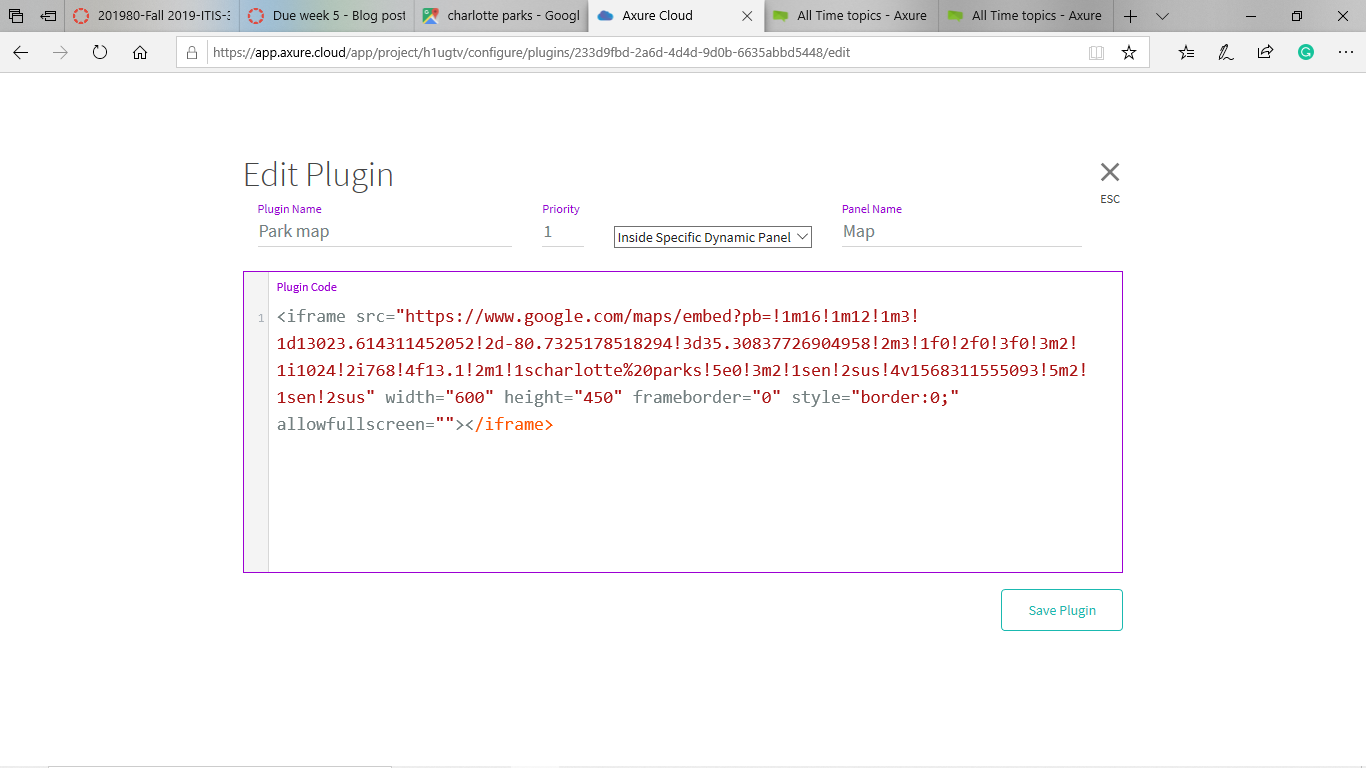 I’m new to Axure and I’m trying to embed a google map showing local parks into my prototype. I’ve put the code into the plugin area and matched it with the name of the Dynamic Panel but it still won’t display. I’m also not viewing it locally so that’s not the problem. Any help would be great.