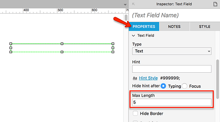 If you’re using a text field widget, you can limit the number of max number of characters that can be entered using the “Max Length” field. You can find this option in the “Properties” tab of RP’s “Inspector” pane when the text field is selected: