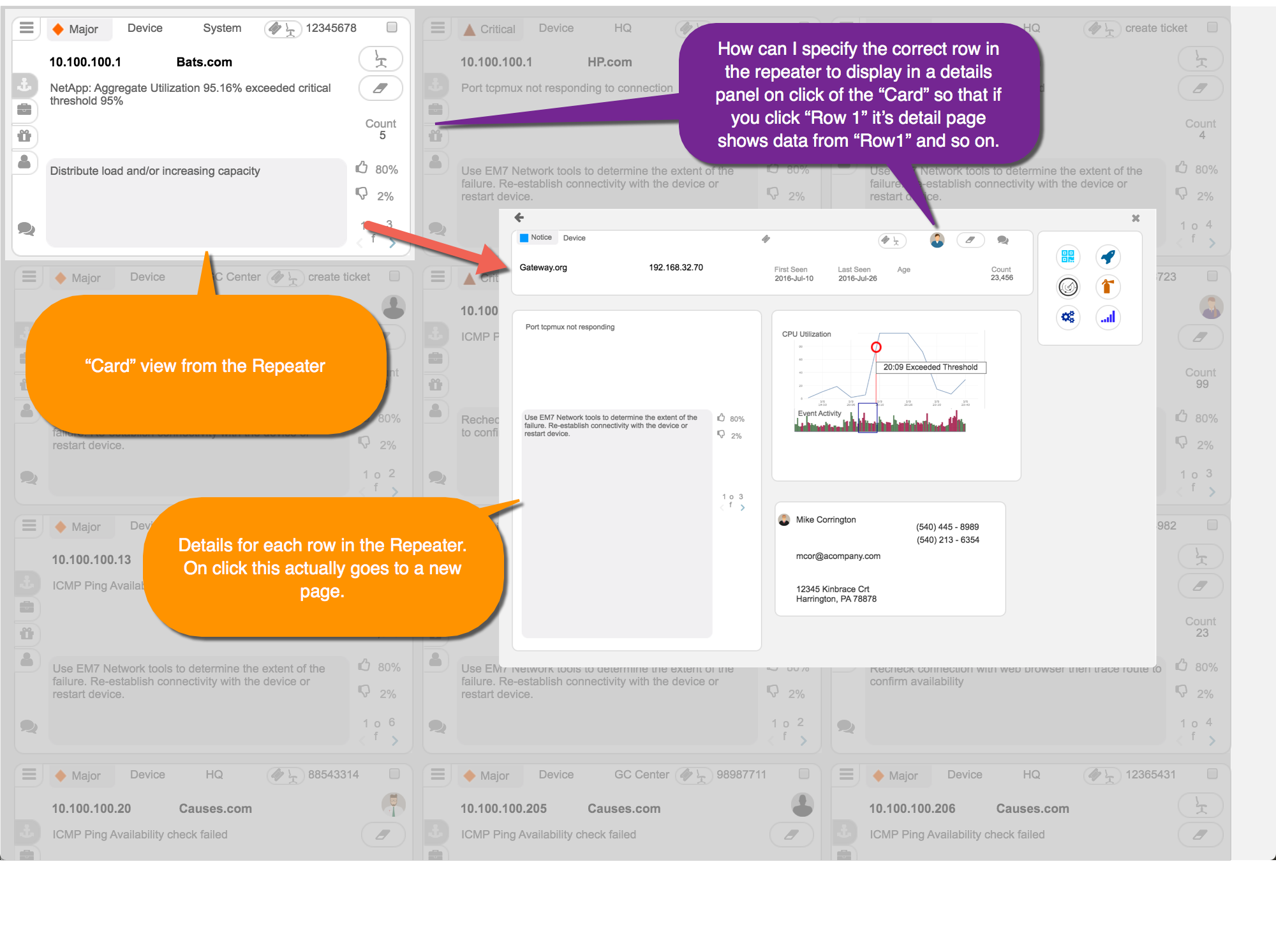 Everything works, except I can’t tell Row/Card #1 to display the details for Row #1 in the “more details” page. I need to display the correct detailed information for each Row/Card.