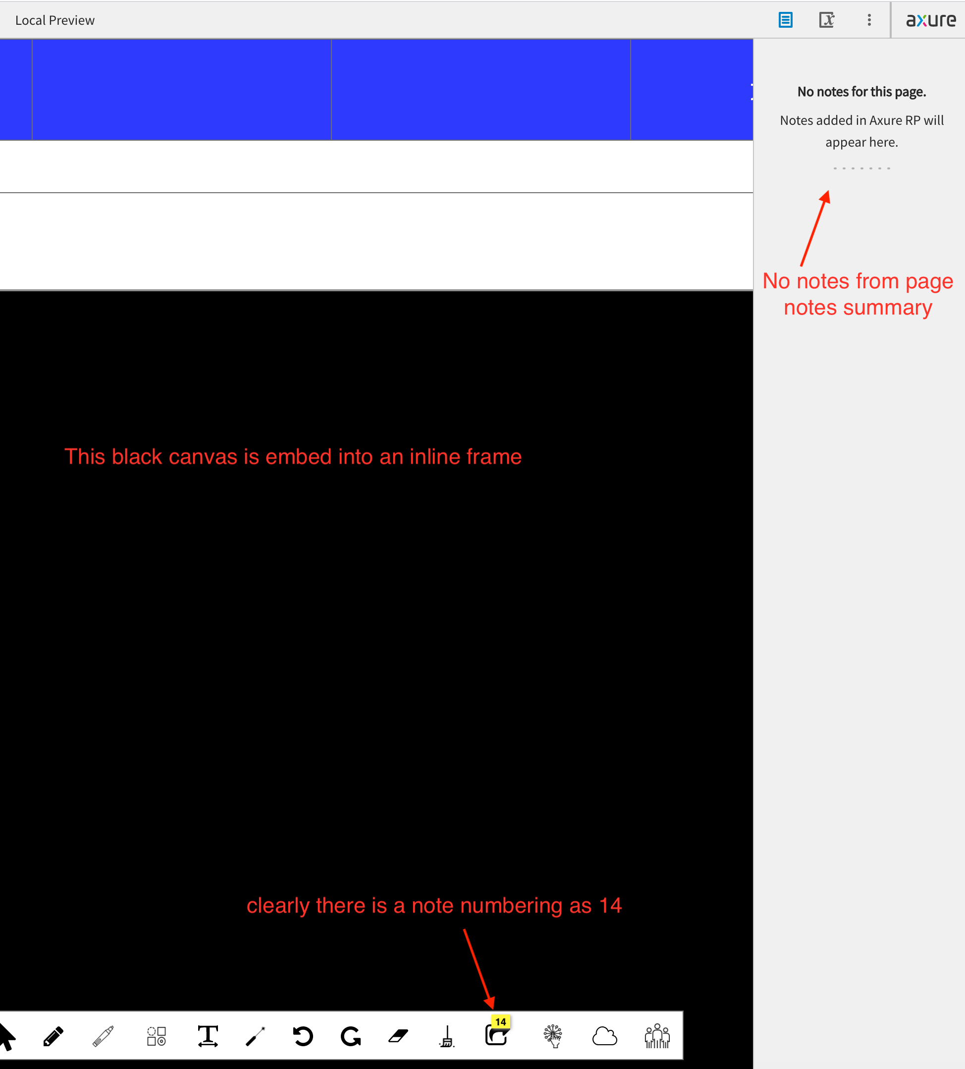 I use notes heaviliy to explain the logic and specific requirements for pages and widgets. However, I found that when I embed the page into a inline frame, the notes will not show in current page notes summary.