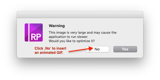 when you drag ‘n’ drop an image in your Axure-file an alert informs you if you like to optimize the image. You need to click ‘No’ and it will include an animated GIF in your file.