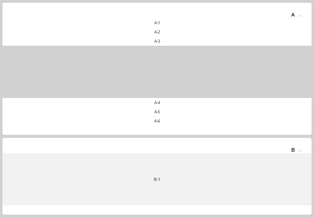 At this point, a gap equivalent to the size of sub-content B-1 appears, and group A does not shift back to its proper position.