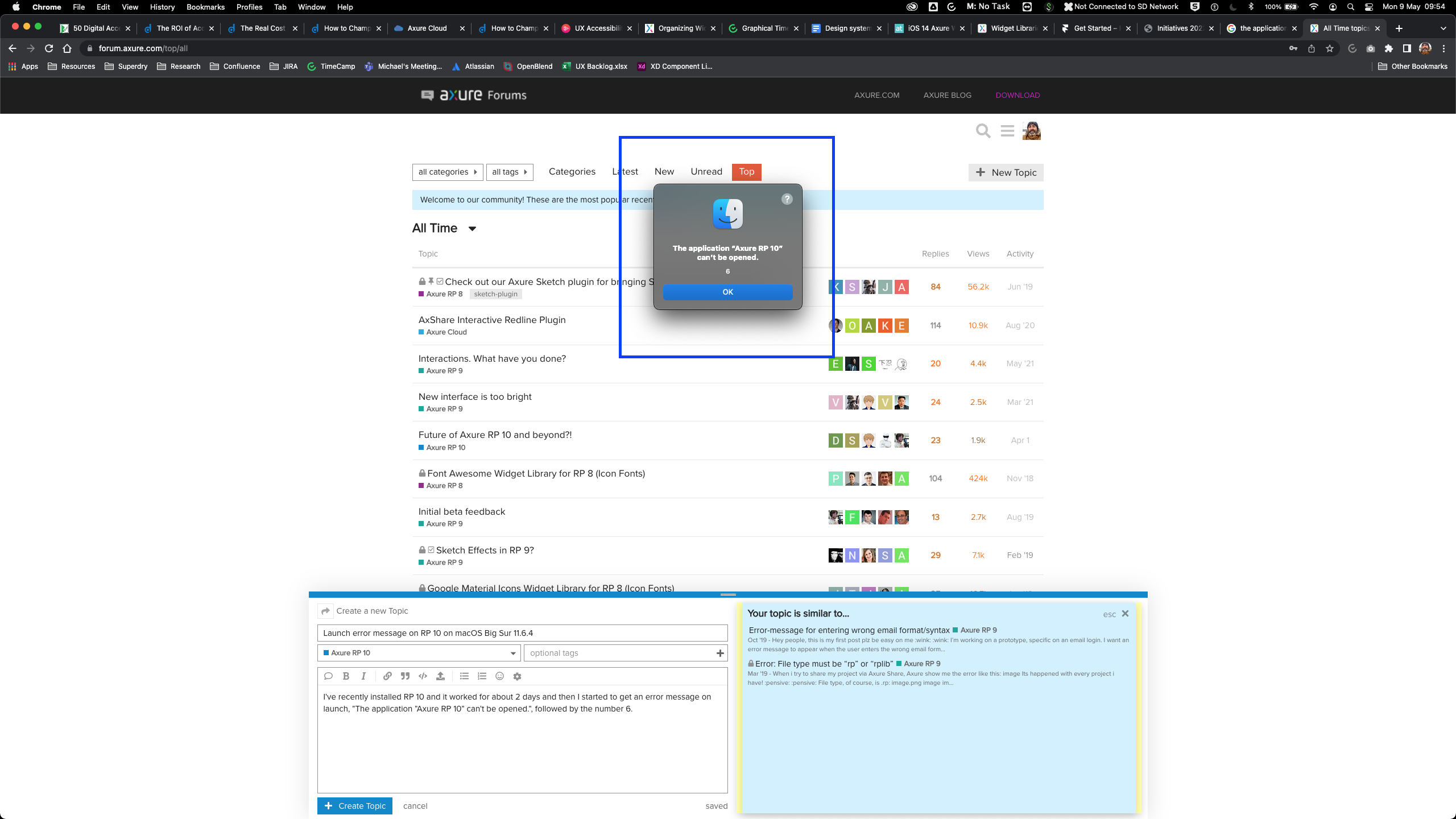I’ve recently installed RP 10 and it worked for about 2 days and then I started to get an error message on launch, “The application “Axure RP 10” can’t be opened.”, followed by a random, “6”. Also, I can only attempt launch by using Spotlight, I can’t just click on the Axure RP 10 icon, or right click on a .rp file and choose “Open With…”. I’ve tried removing RP 10 and reinstalling but that didn’t work. Could it be that permissions are the cause? I’ve attached the Axure log which says which files Axure needs permission to in order for it to work.