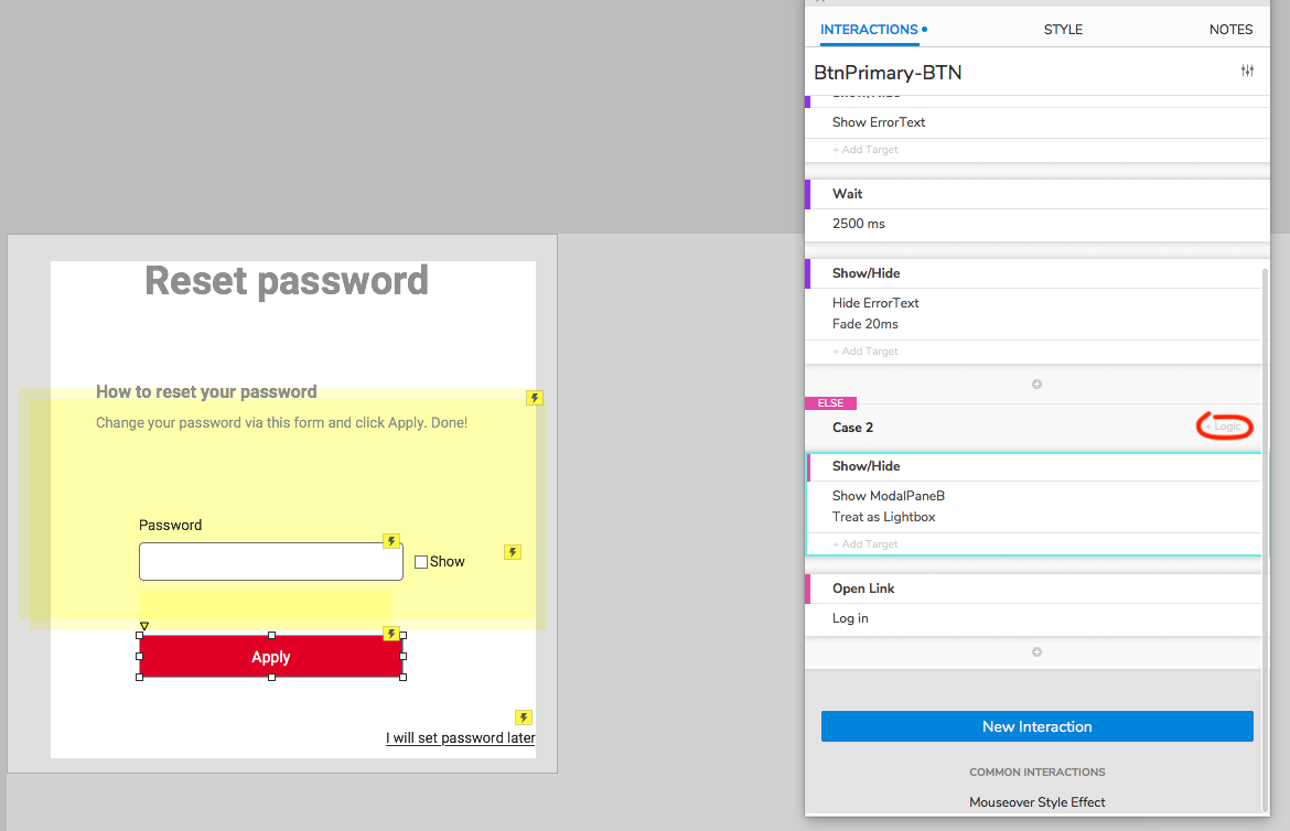 Hi Axure, when it come to add logic , it looks like disabled - not usable , only hover indicates you can add something , but at the first sight I almost overlooked it. Please make it more visible , maybe even button like. It is pretty important feature. Apart from that Logic feature is not showed unless you will add some sort of Case, so in default without case the option is even not there… That is pretty questionable behavior imho