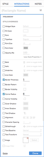 I have a Border Colour & Border Radius interaction style applied to a widget, however, the summaries show the following: