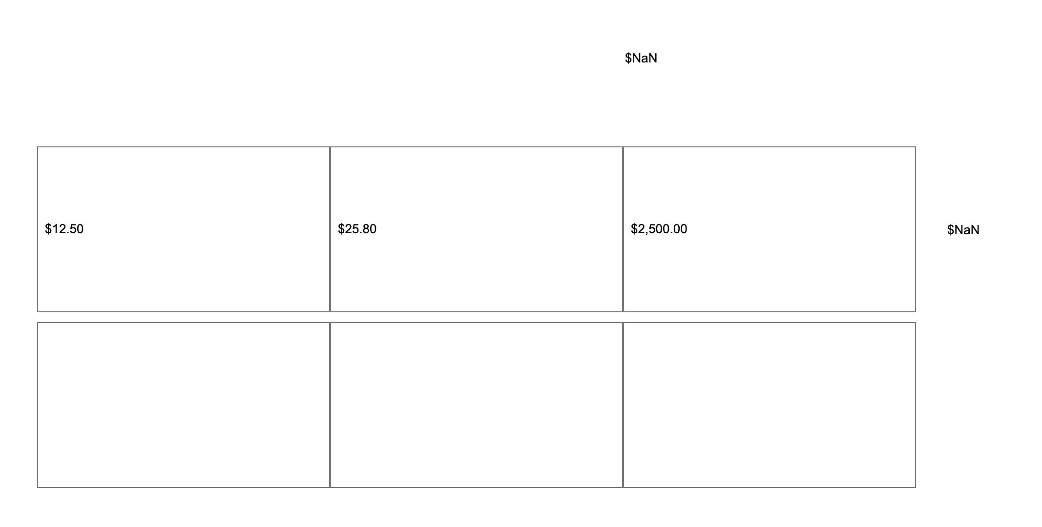I can’t get the formatting to work on my sum. I have a table that has different rows and each row has a rowtotal, and then we have a total on top that keeps addings as the user enters input in the different cells. I’m adding three sums up on each row and I’ve included an onlostfocus interaction to add a formatting for currency that I took from here: . When adding the sum, the $.00 are getting added and it’s not working correctly. Is there a chance to have inputs summed up with the currency formatting as well?
