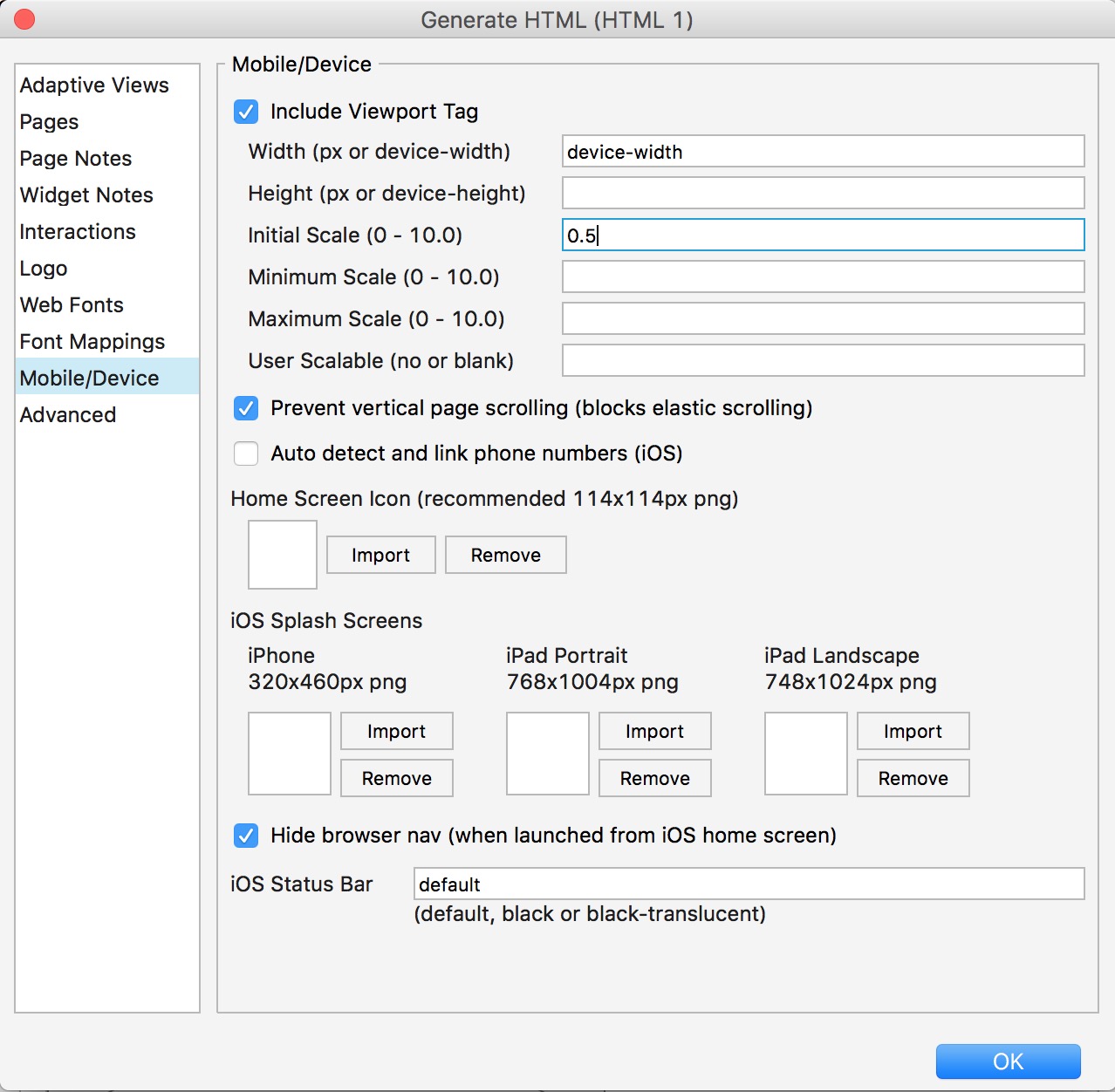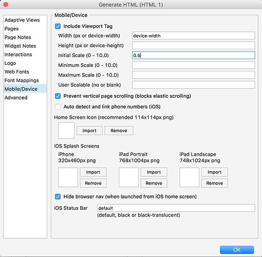 This will override the phone’s native viewport width and instead display the prototype as though the viewport width were 320px. (Note: This will not affect desktop viewing, but this setting will apply to all mobile devices.)