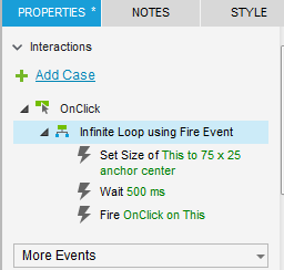 One of the tricky parts with using OnResize for looping animations is that the resize by default will fire every single time there is a resize. For example, right now your ellipse iii widget has a chain of events that starts by enlarging ellipse iii; that resize re-fires the OnResize action, which in turn re-fires that OnResize action, etc… If you look at the “Console” tab in your prototype’s sitemap after running the animation you’ll see an infinite loop of OnResize interactions for ellipse iii.
