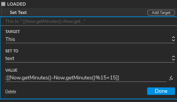 :[[Now.getMinutes()-Now.getMinutes()%15+15]]