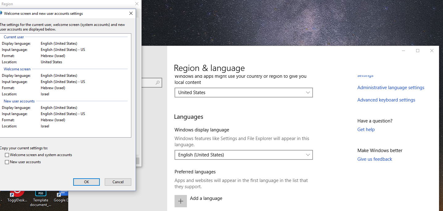 Aha, thanks for that screenshot! It looks like having the format for your user account set to Hebrew (Israel) is what’s causing the issue. I get the same error if I switch my settings to reflect what you have under “Current User”, but spellcheck works if the format is switched back to English (you have to restart Axure RP after applying the settings change). If you need to get spellcheck working then switching the format in “Region & language > Administrative language settings > Format” should help as a workaround. I’ll file this internally so that we can look into more language and regional support for the spellchecker. Thank you for bringing this up!
