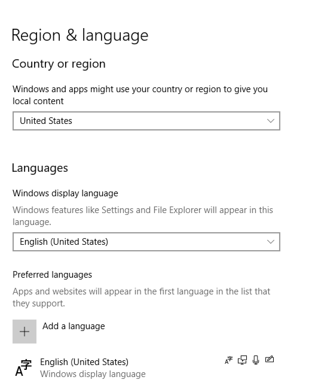 Hmm, that’s the same display language that I have set as well, but I’m not able to reproduce the same issue you’re seeing when pressing F7 to run spell check on Windows 10. To confirm, for “Country or region”, do you have “United States” or something else set? Likewise, for “Preferred Language”, which language is listed at the top of the list? These are the settings that are working on my end; if you have anything different then that would be good to know as it may help to isolate why you’re getting that error message on your machine: