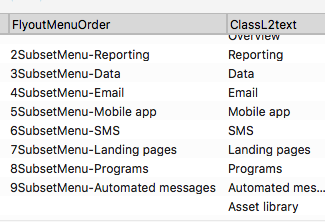 I took all your hidden flyout menu repeaters and put them in states for a âSubsetMenuâ dp. Clicking on an L2 item in the left nav will set the SubsetMenu dp to the state with itâs text label (as defined by [[Item.ClassL2text]]) and moves that dp to its y-location. So, I donât think you need the last two cases in your OnItemLoad event, and you donât need the FlyoutMenuOrder column.