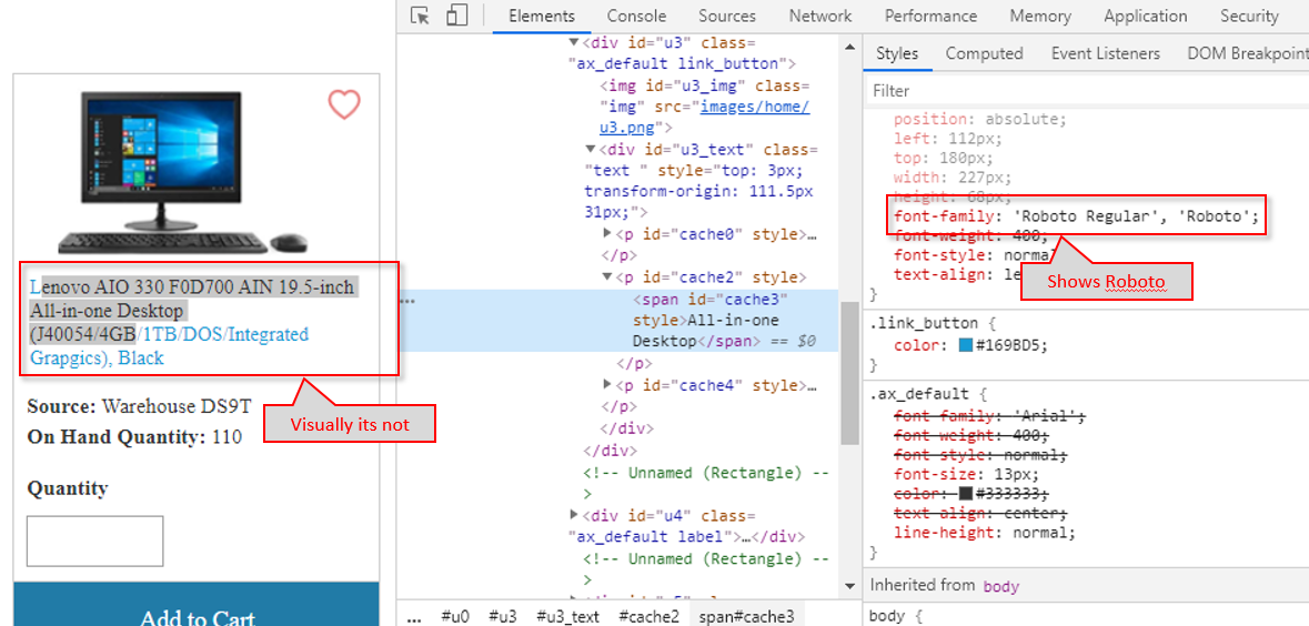 Hi, I have tried using Google Web fonts on my Axure RP file, but when i preview on browser text is shown in different font style. Please check the attached RP file and screenshot which shows in inspector “Roboto” but actually it appears differently.